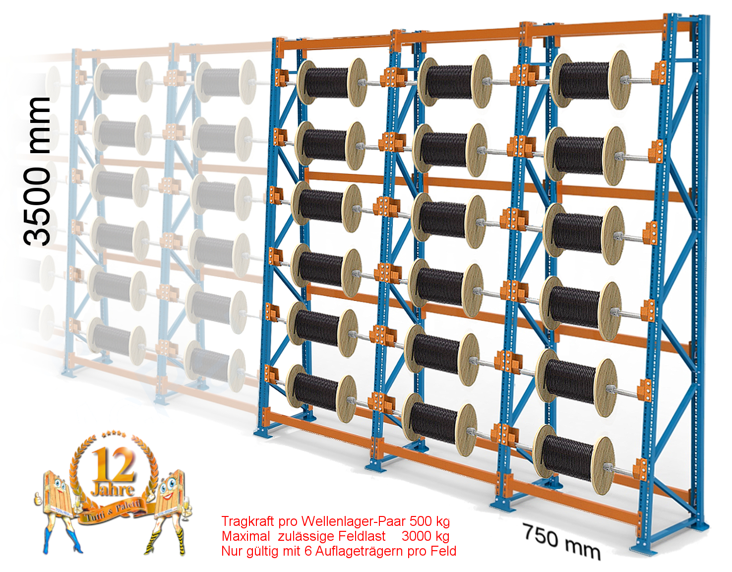 18 Kabeltrommel-Ebenen komplett für Breite 750 mm