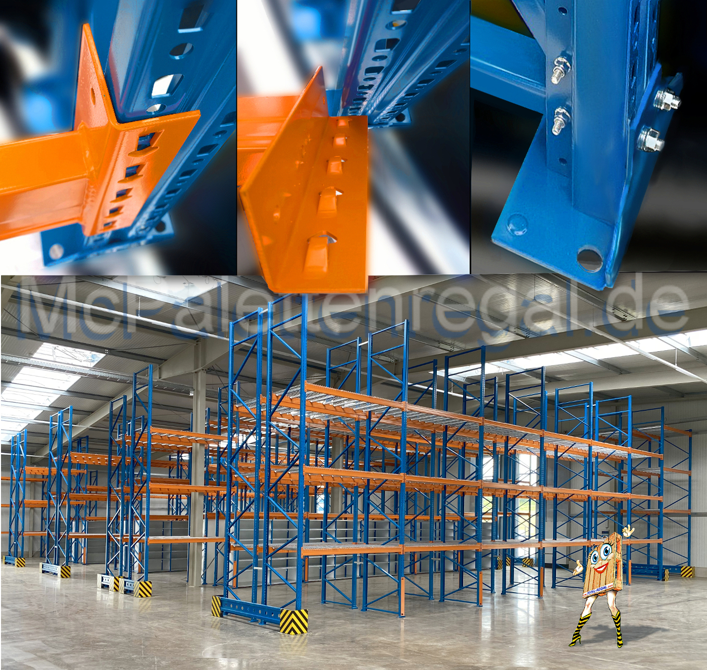 Weiterführende Links zu "Palettenregal 6,5 m hoch, Feldbreite 2,7 m, 3 Traversen-Ebenen ( = 4 Rahmen + 18 Traversen)"